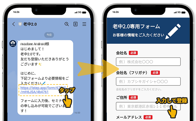 リッチメニューの案内に従い、必要事項を入力します。