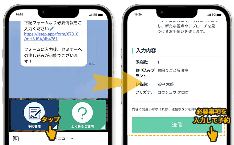 公式ラインの予約フォームよりセミナーを予約します。